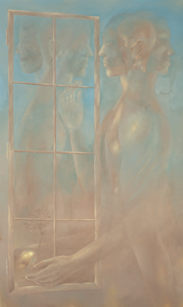 His ethereal works use aspects of surrealism to convey vivid memories and emotions. The coherent contrast between the statuesque figures that stand out in Adèle’s works and their environment makes the two aspects more whole and interdependent. By painting them from behind or avoiding direct confrontation, we interpret their feelings in the way that best suits us.