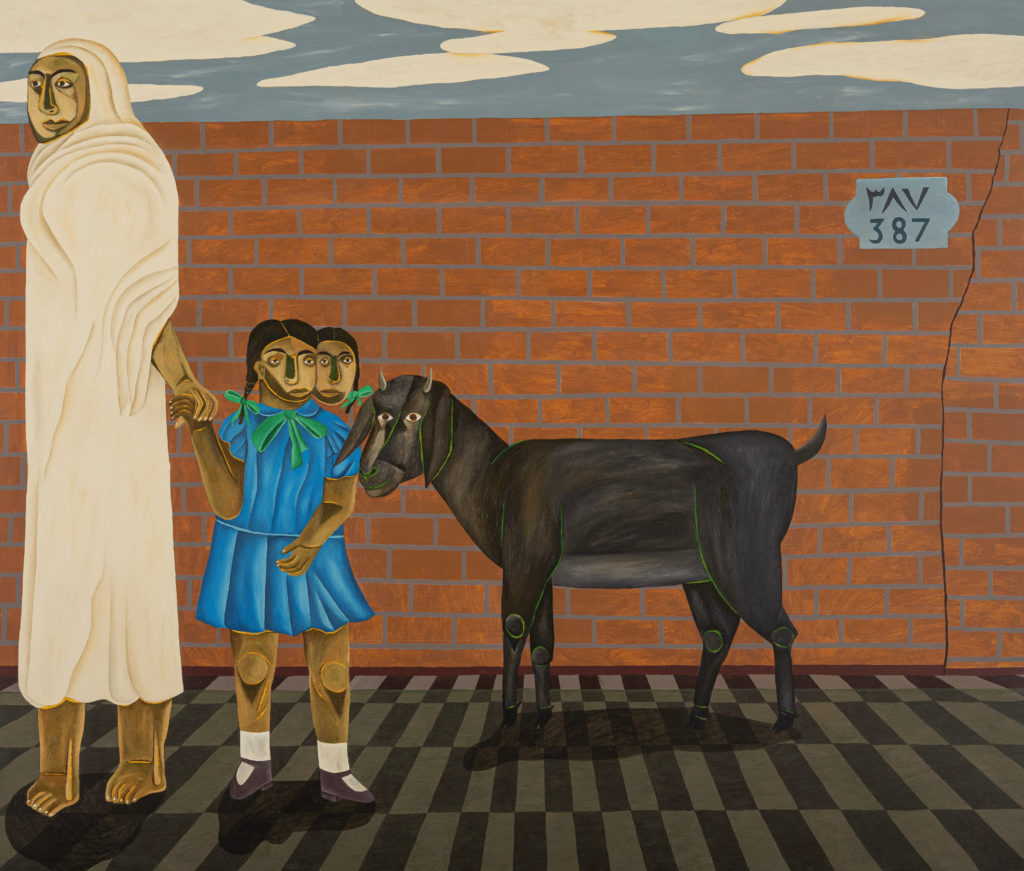 The dialogue between humans and animals, another recurring theme in Elmur’s universe, reaches poetic heights in works like Rabbit Performers (2024) and The Yellow Wall (2024). Here, the boundaries between species blur, suggesting a world where nature and humanity coexist in a delicate equilibrium – a nod to animist beliefs and ancestral wisdom that still shape the cultural fabric of Sudan.