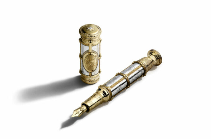 Conceived within Montblanc’s Artisan Atelier in Hamburg, each piece in this High Artistry collection is more than a pen — it is a microcosm of Versailles itself: its light, its architecture, its royal codes. Five unique editions pay homage to the palace’s timeless legacy, each one translating its gilded opulence and baroque details into sculpted gold, marble inlay, diamonds, and enamel.