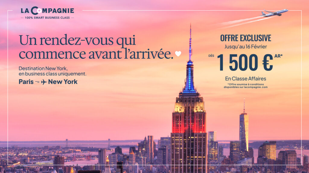 From 27 January to 16 February 2026, La Compagnie unveils exceptional all-inclusive round-trip fares between Europe and New York (Newark), valid for departures from 14 February through 31 December 2026. A generous window that leaves room for spontaneous escapes, long-awaited reunions, or carefully orchestrated city dreams.