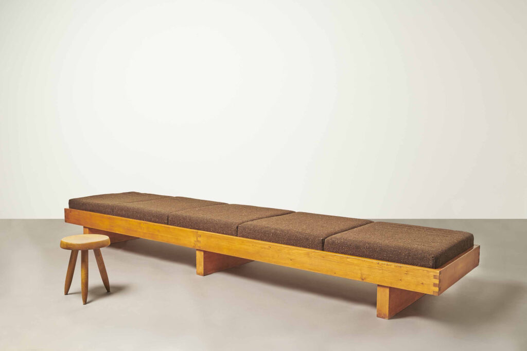 Works by Charlotte Perriand, Pierre Jeanneret, and Jean Prouvé articulate this moment with clarity and authority. From Perriand’s Straw Armchair and Les Arcs bench to Jeanneret’s High Court armchairs and Prouvé’s Cameroun sunshade panel, each piece speaks to a design ethos rooted in honesty of construction and social purpose.