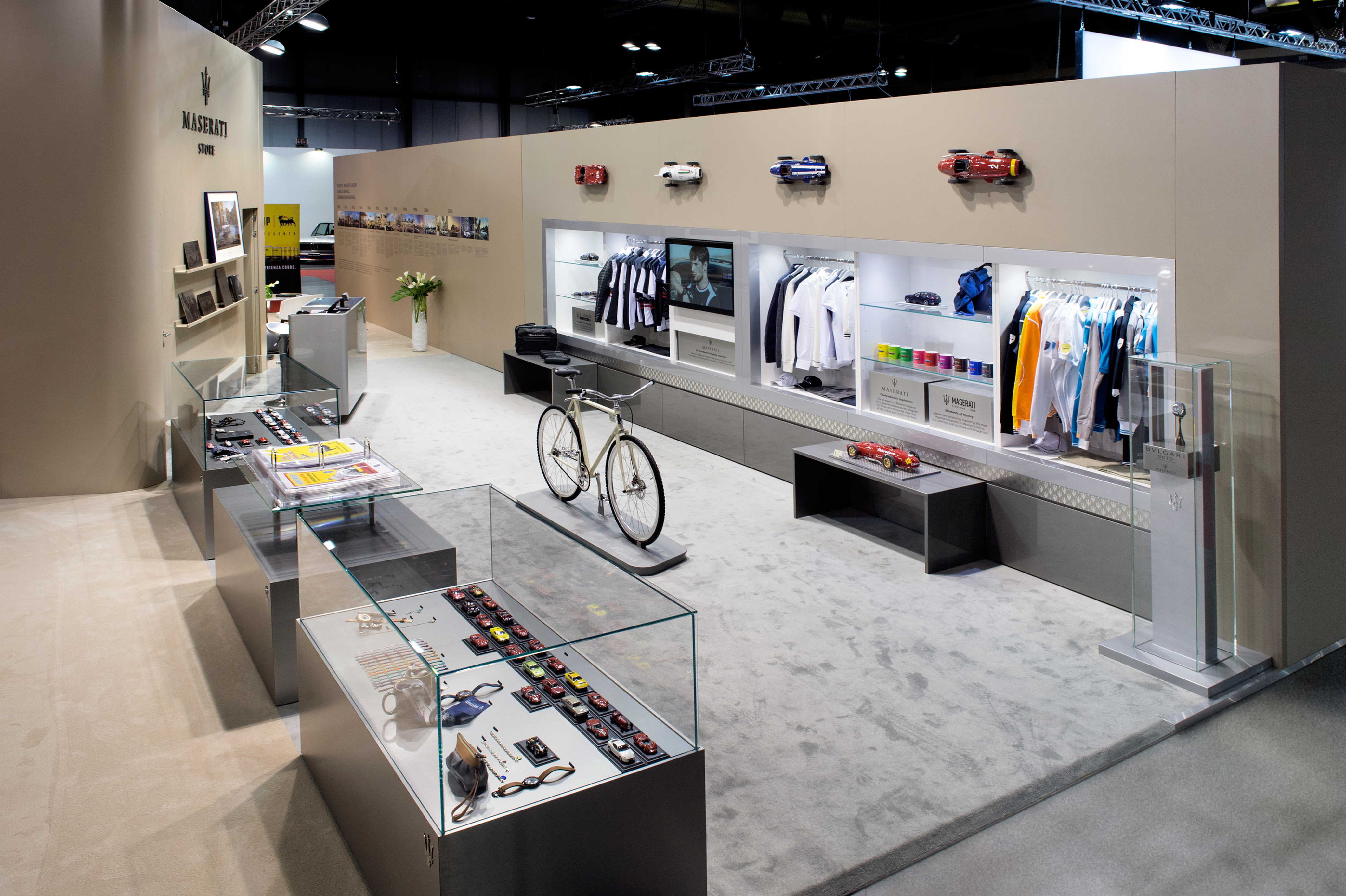 The stand also incorporates the Maserati Store: with a blend of crafted details and contemporary design, quality materials and latest-generation fabrics, it offers for sale the key articles in the four merchandising lines: Maserati Corse, Contemporary, Officine Alfieri Maserati and Classiche. Four stylish collections, sporty and refined, for a look that is always contemporary and up-to-date.