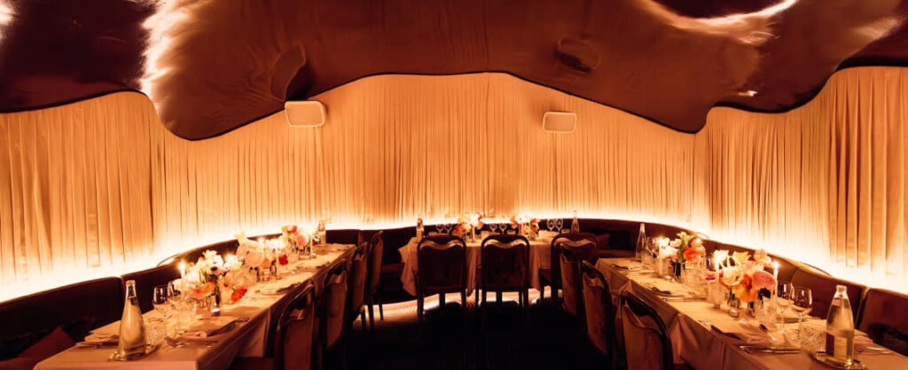 The night begins softly with a chic, 80s-inflected dinner, then slips downstairs into an electrifying underworld.