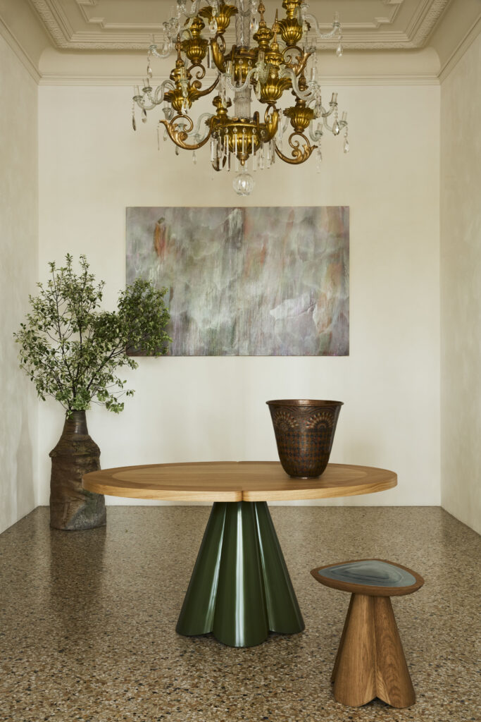 Everything in this collection is born from gesture. You can sense the weight of thought behind each proportion, the respect for balance and breath. The collection – over thirty new pieces – evokes a dialogue between strength and tenderness, between architecture and poetry. The materials converse quietly: wood meets glass, stone meets metal, leather softens steel. Nothing feels rigid, everything breathes.