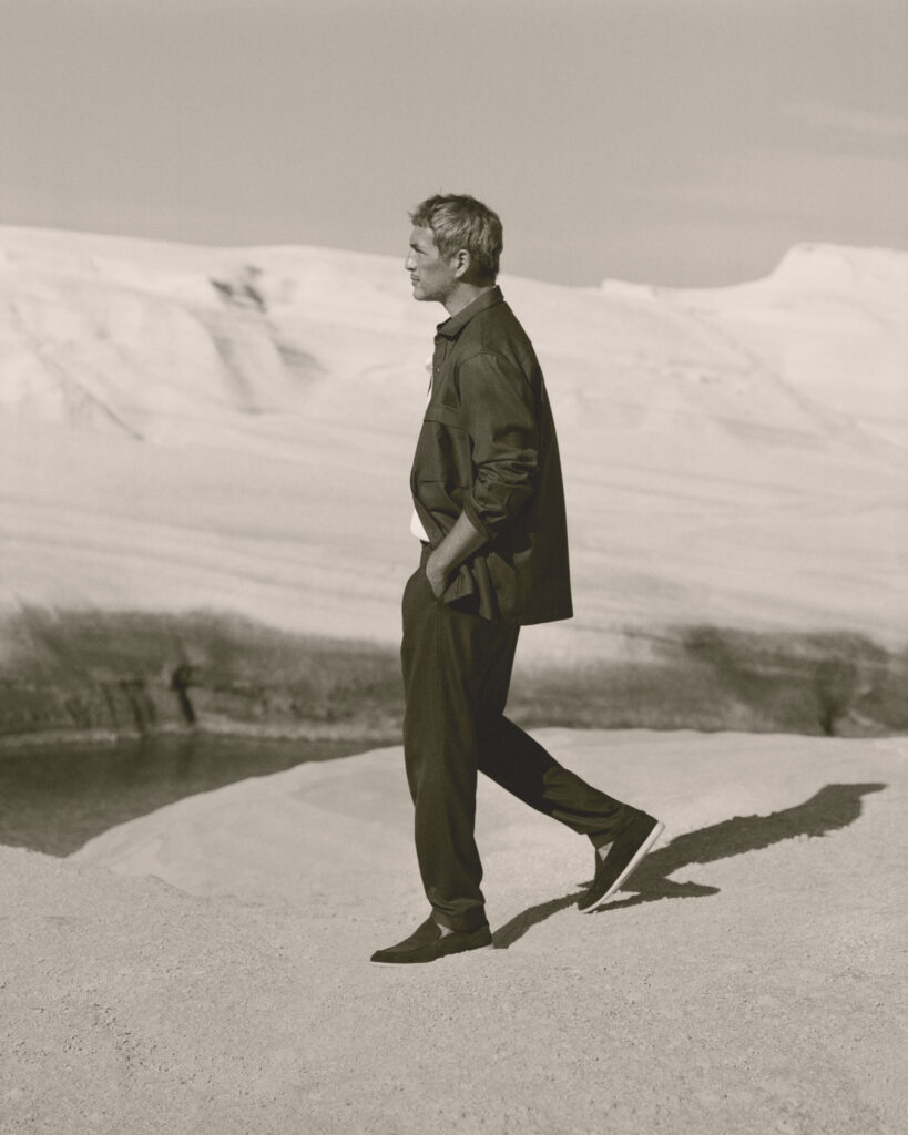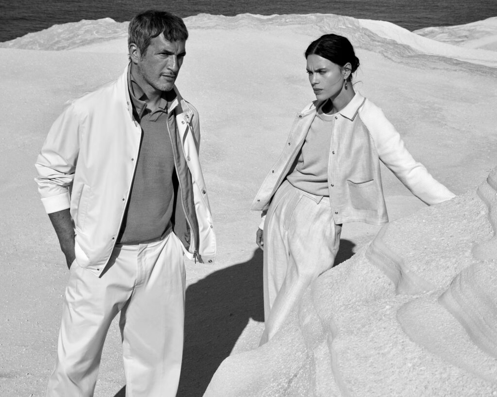 There is no noise here. No hyper-styling. No frantic narrative arc. A man and a woman move through wind and sun as if they belong to the terrain. The garments do not compete with nature. They negotiate with it.