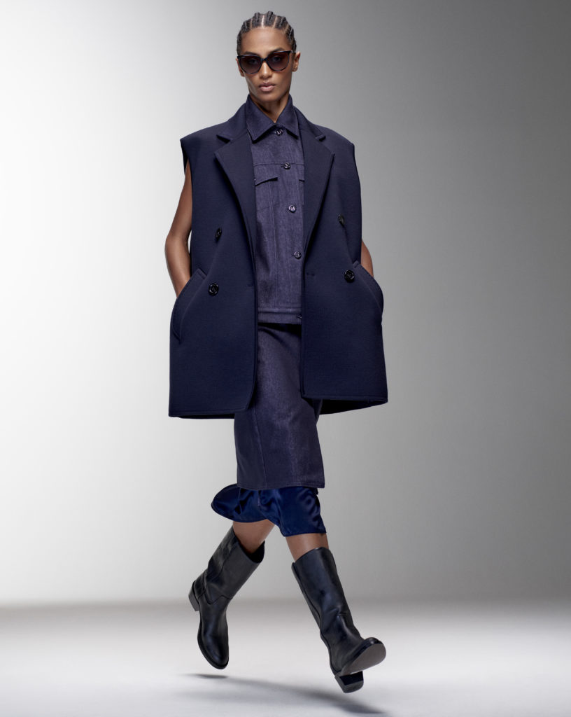 Frances Ann Lebowitz is a native New Yorker, a writer, wit, raconteur and sometime actor, known for her sardonic social commentary. In the ‘70s she embodied the hip, downtown Manhattan of Andy Warhol’s ‘Interview’ and now she is wowing a new generation of fans in Martin Scorsese’s documentary series ‘Pretend It’s a City’. Warhol’s advice to ‘always wear the same thing’ may have influenced the iconic Lebowitz look that Max Mara loves: bespoke Savile Row pinstripe jacket, fine poplin shirt with French cuffs, washed out jeans, western boots and a cashmere greatcoat.