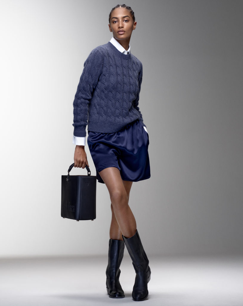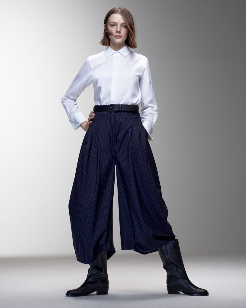 Another New Yorker, singer songwriter Patti Smith is the ‘punk poet laureate’. In 1975 she was photographed by Robert Mapplethorpe for an album cover in a smartly tailored suit and a mannish shirt. It’s been her look ever since, and it’s generated considerable comment on the fashion pages. The New York Times described Ms. Smith as a ‘trendsetter for several generations’ — and asked how many young women have copied her look without ever realizing it. ‘Horses’ was the name of the album, and the committed urbanite does in fact have an equestrian streak, having once declared a life ambition to ride across the pampas of South America. Max Mara echoes that with a series of pieces inspired by the art of the saddle; a sellerie version of the 101801, a leather sleeved trench-coat, a strict skirt in chestnut calfskin and a pinstripe take on gaucho pants.