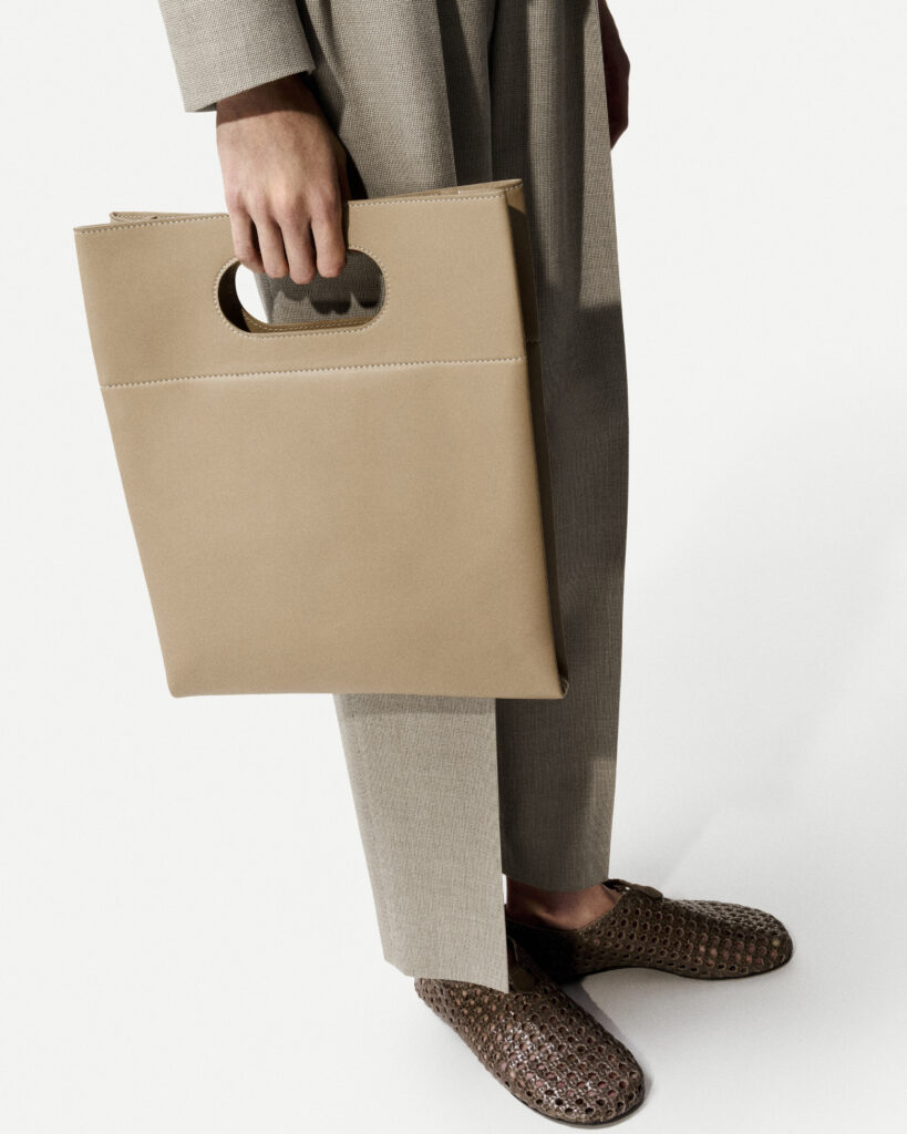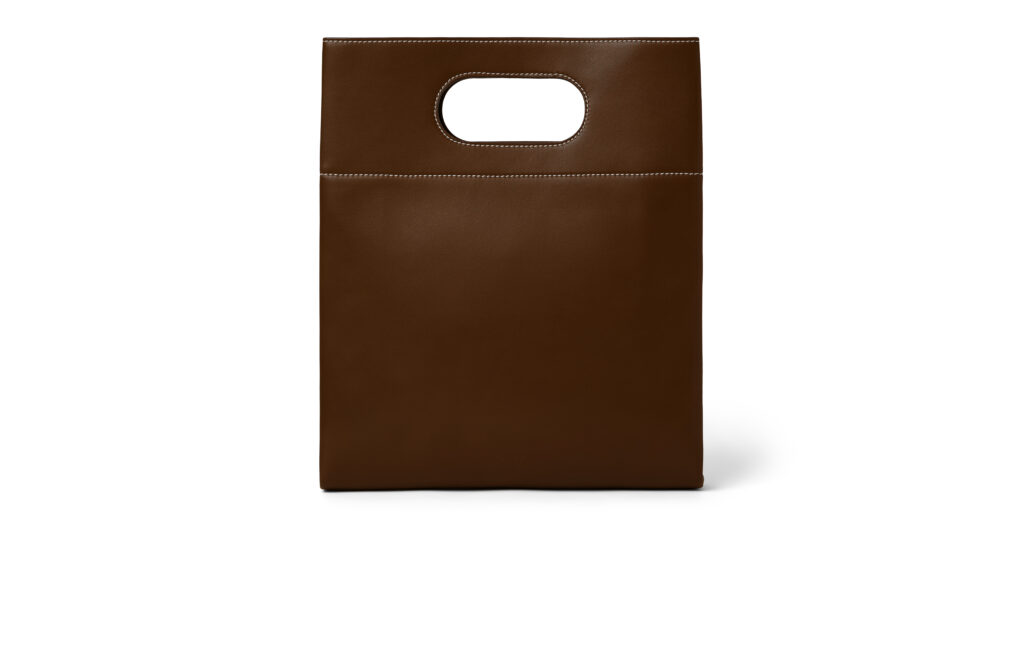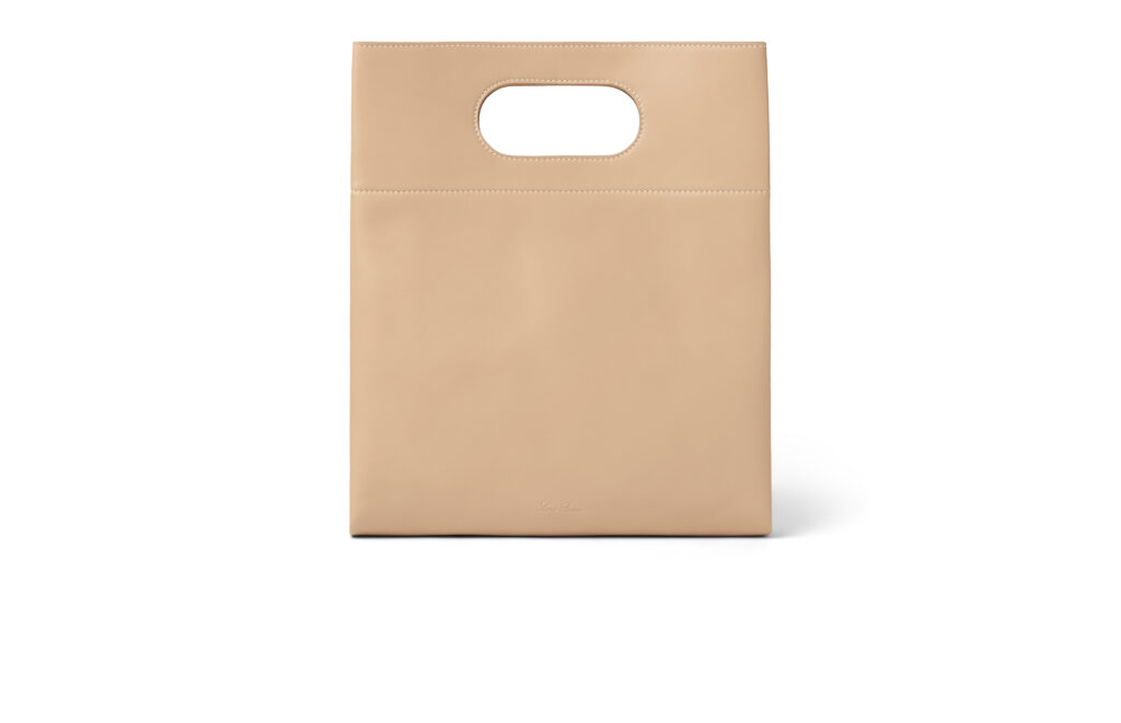 The Just Bag is built around a clean rectangular silhouette, one that feels timeless rather than seasonal. Its geometry is precise yet soft, balancing practicality with refined minimalism. At first glance, the bag appears almost disarmingly simple. But look closer and the details reveal themselves quietly – a subtle embossed logo, perfectly balanced proportions, and a handle seamlessly carved from the same piece of leather that forms the body of the bag.