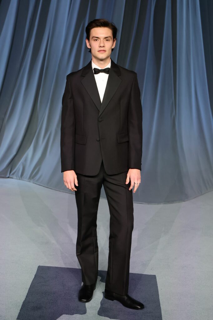 Louis Partridge channeled youthful sophistication in a black wool tuxedo with a crisp white shirt and grosgrain bowtie – the perfect portrait of minimalist allure.