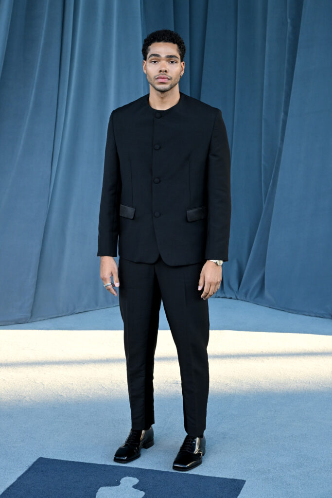 Damson Idris brought effortless refinement in a light blue mohair suit, paired with a white poplin shirt and black grosgrain tie – a look that captured Prada’s understated masculinity, both modern and eternally elegant.