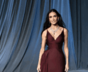 Demi Moore stunned in a deep burgundy satin gown, sculpted with architectural precision and softened by a cascading georgette drape – a study in contrasts between structure and sensuality, power and grace.