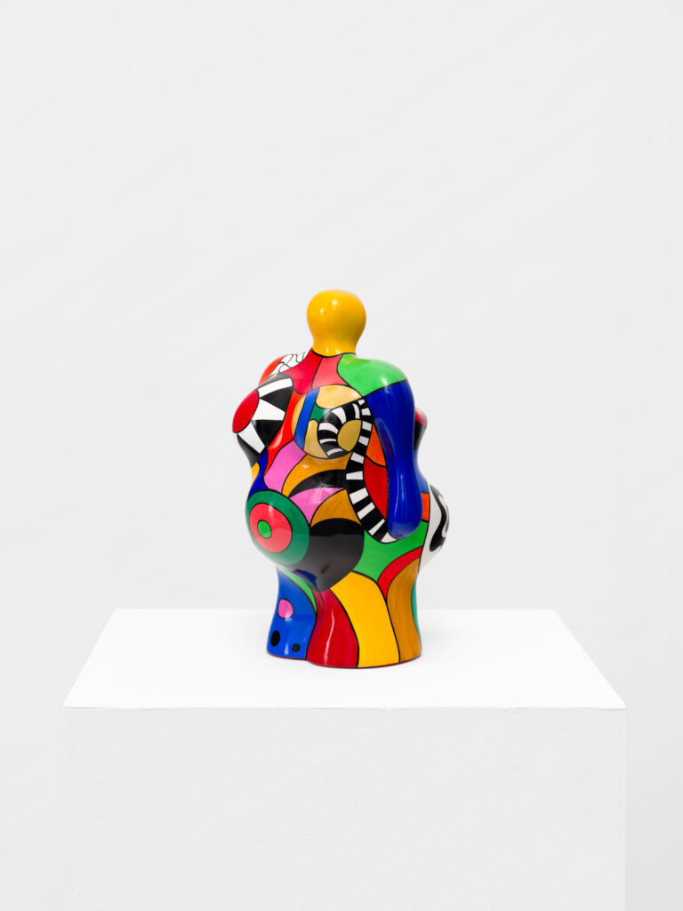 Two vibrant works – Lampe angulaire (1992) and California Nana Vase (2000) – showcase Saint Phalle’s playful defiance.