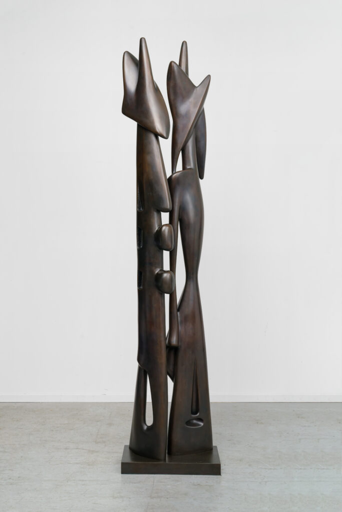 Elongated forms in wood and bronze stretch like dreams made tactile – sensual, abstract, spiritual all at once.